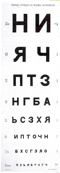 from Duchamp, ed. Francis Naumann: "He even purchased a number of eye charts, one of which he sent to Walter Arensberg [above], hoping, as he said in an accompanying letter, that it might be of some use to him (presumably in his cyrptographic researches."