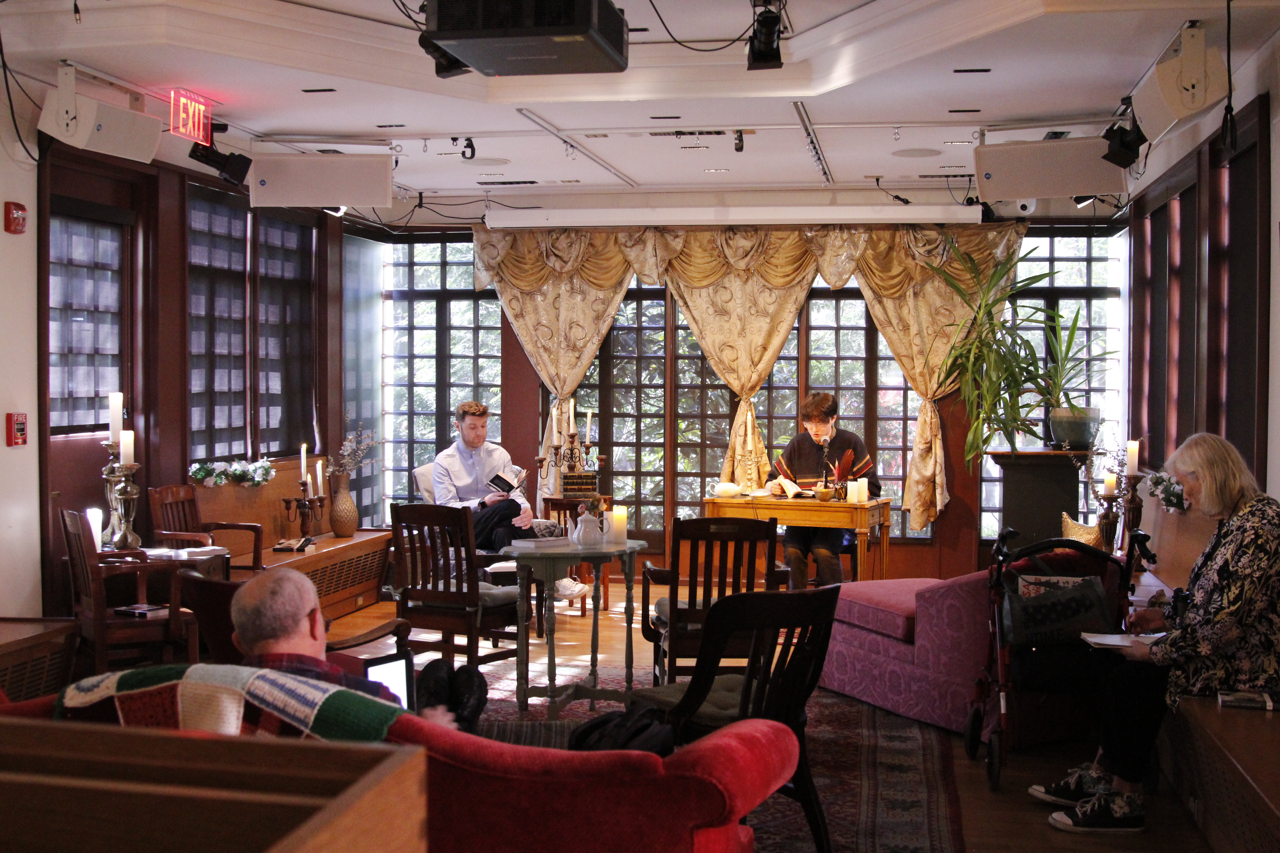 The Writers House was saturated by 1920s imagery and advertisements, full of food inspired by Gatsby's lavish parties, and swinging to the syncopation of early jazz. Readers gathered in the Arts Cafe to contribute to the performance of The Great Gatsby.