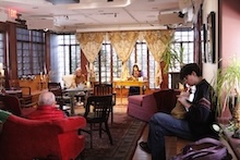 The fifth annual Marathon Reading at the Writers House was the first to feature a female writer and a non-American (and yorkshire puddings!). Flowers, teapots, and fashionable hats were found everywhere as we recreated the floral and fluid world Clarissa Dalloway's London. Over the course of six hours and forty minutes, nearly fifty readers took turns inhabiting Woolf's voice, creating their own stream of unique timbres, accents, and styles, and revealing a music to the prose that one's inner reading voice overlooks. All in all, the day was extraordinarily amusing!