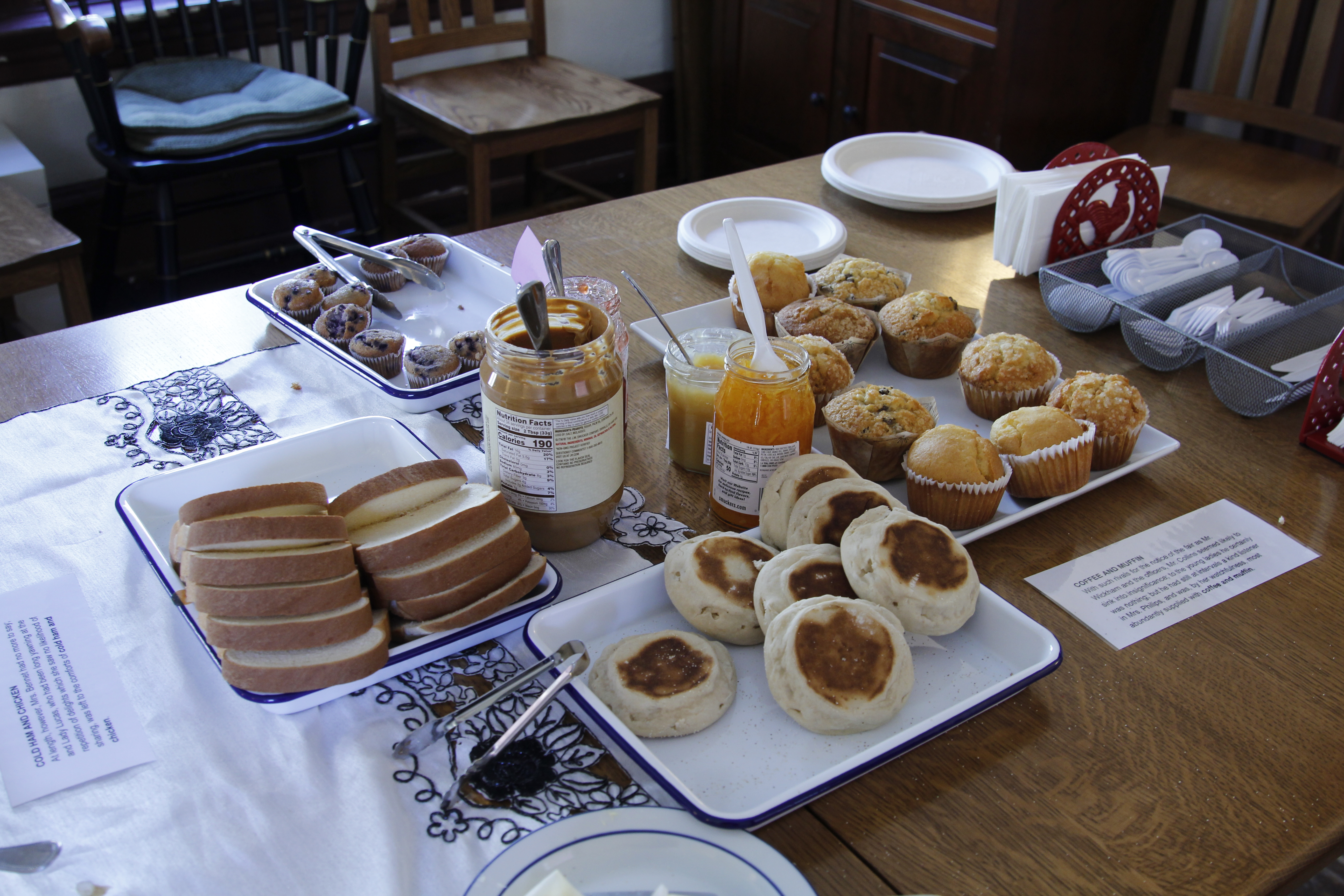 This year's marathon reading book was Shirley Jackson's mystery classic We Have Always Lived in the Castle. Yes! Starting at 3:00 PM and continuing until it's done, we read the book from start to finish. To help celebrate the book, we decorated the KWH to reflect the lonely small-town estate in Vermont at the center Jackson's novel and cooked food from the book (including from the final fateful meal).