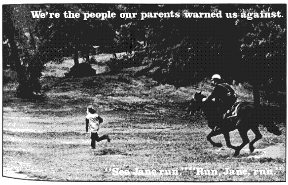 A student fleeing from mounted police during an anti-war protest, c. 1970