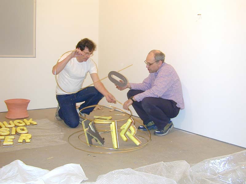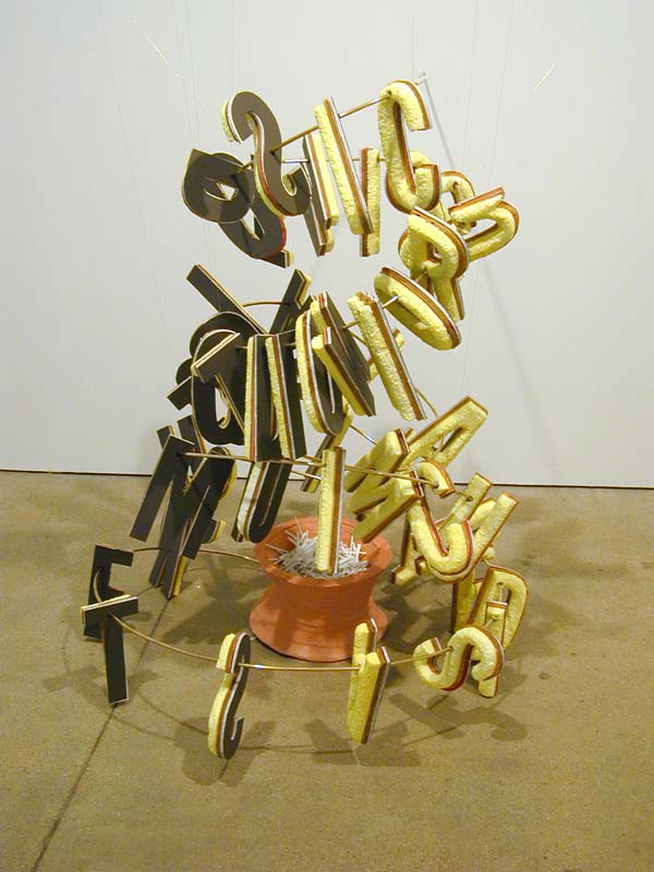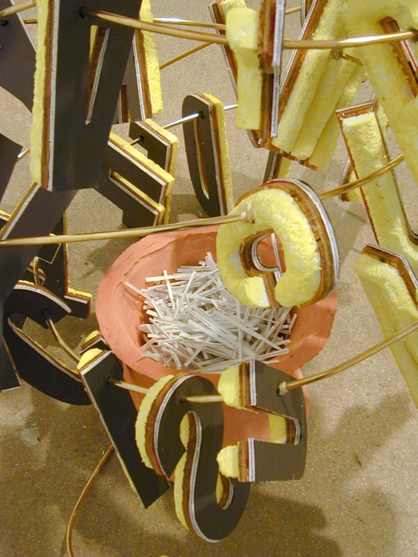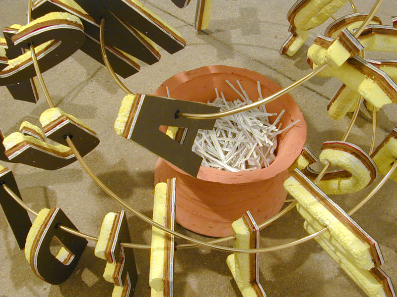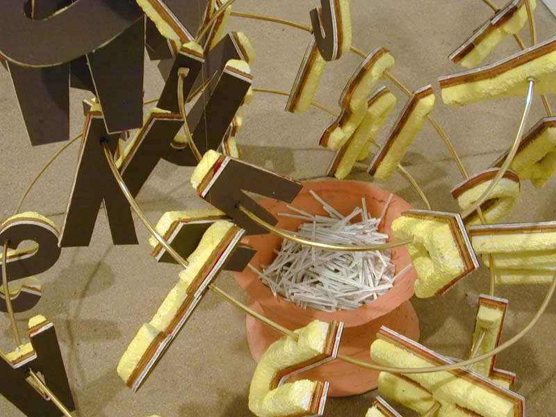 brass tubing into a terra cotte base that is filled with lines of the poem.