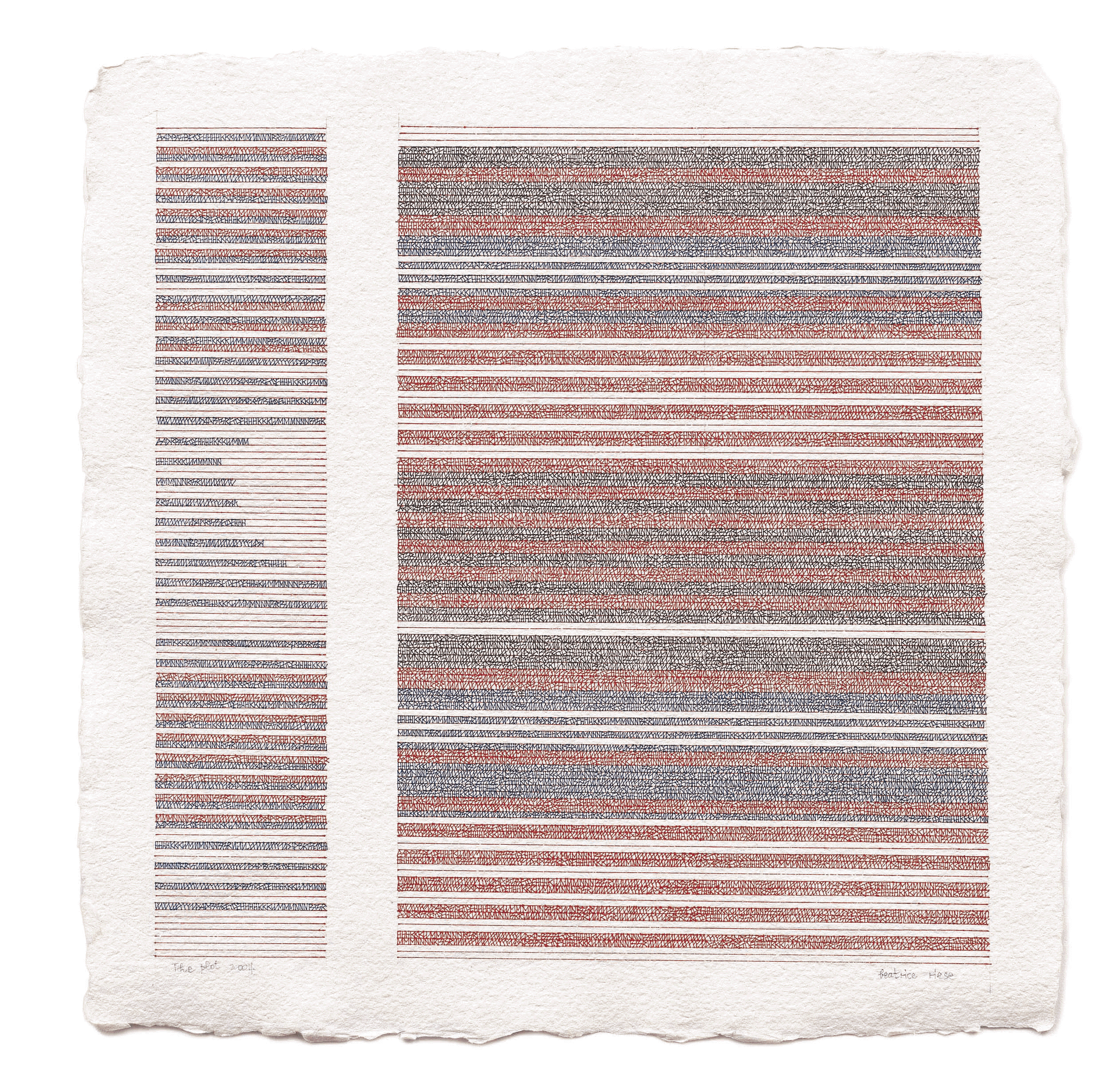 Beatrice Riese Beatrice Riese (born 1917 in The Hague - died 2004 in New York) at Walter Randel Gallery (NY), April-May 2006. Riese made a series of sublime colored alphabetic and quasi-alphabetic veils, generally with grid format (a sort of cross between Agnes Martin's painitngs and Carl Andre's poems). — Charles Bernstein CLICK ON IMAGES FOR HIGH-RESOLUTION SCANS