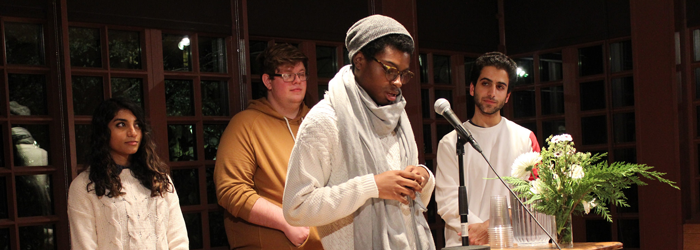 Come hear students from Kathryn Watterson’s classes: “Finding Voice: Perspectives on Race, Class & Gender” (English 145) and “Learning from James Baldwin” (English 481). Over the course of the semester, these students have examined myths and lies about race, class, gender, and sexuality embedded in our cultural experiences, as well as in systems of power and privilege. They’ve also been inspired in their own writing by the brilliant intellectual, spiritual and literary legacies of James Baldwin. Listen to these young writers speak their truths in raw and candid stories and essays: Lily Giordano, Yoonji Bridget Lee, Anika Ranginani, Lauren Tappen, Elaine Jia Yi, and Ruoyan Wang; Terri Wood Allen, Elliot Bones, Rebecca Gelfer, Rory Harte, Tanya Jain, Elizabeth Johnston, Skye Lucas, Misha McDaniel, Wesley Neal, Madison Sanders, Alexandra Schuh, and Sarah Spencer.